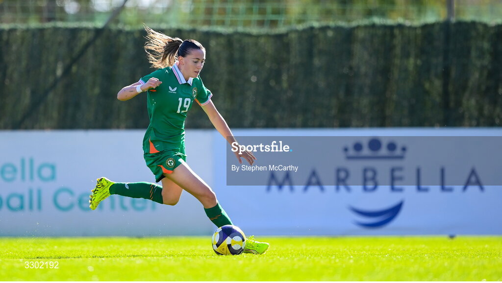 29 November 2025; Abbie Larkin of Republic of Ireland during the women's international friendly match between Republic of Ireland and Hungary at Marbella Football Centre in Marbella, Spain. Photo by Stephen McCarthy/Sportsfile