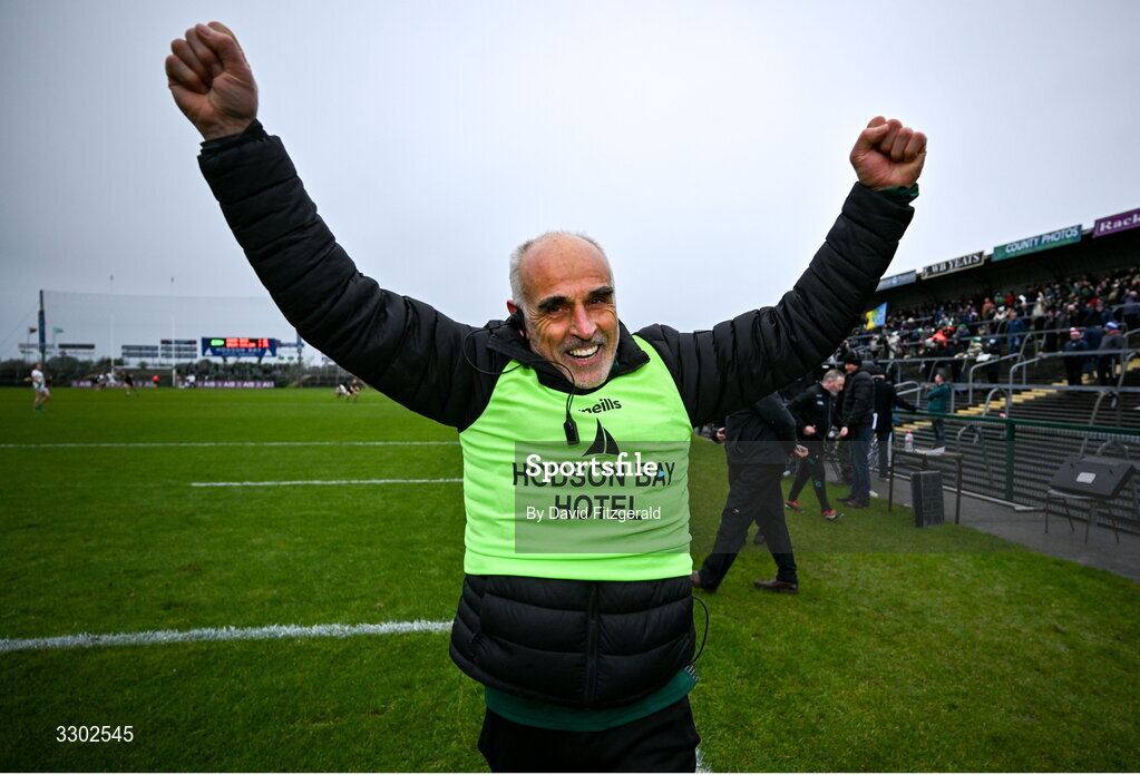 30 November 2025; St Brigid’s manager Anthony Cunningham celebrates at the final whistle after the AIB Connacht GAA Football Senior Club Championship final match between St Brigid's and Maigh Cuilinn at King & Moffatt Dr Hyde Park in Roscommon. Photo by David Fitzgerald/Sportsfile