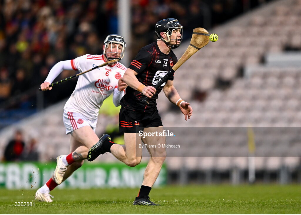 30 November 2025; Kevin Mahony of Ballygunner in action against Aaron Fitzgerald of Éire Óg Ennis during the AIB Munster GAA Hurling Senior Club Championship final match between Ballygunner and Éire Óg Ennis at FBD Semple Stadium in Thurles, Tipperary. Photo by Piaras Ó Mídheach/Sportsfile