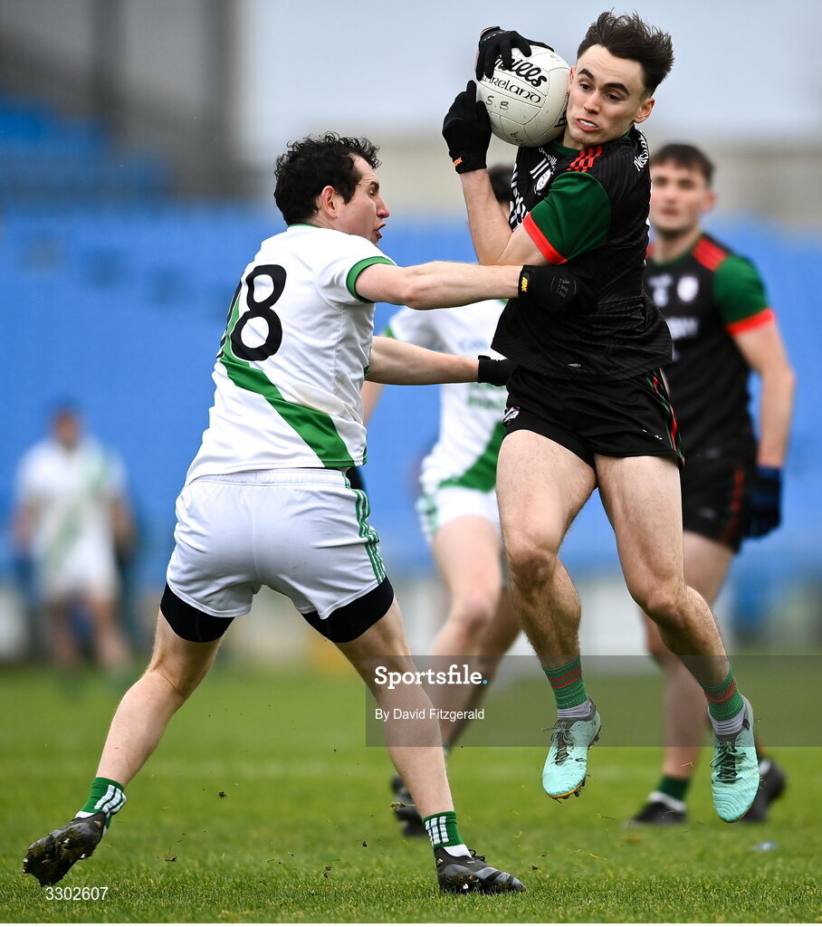30 November 2025; Ciaran Sugrue of St Brigid’s in action against Paul Kelly of Maigh Cuilinn during the AIB Connacht GAA Football Senior Club Championship final match between St Brigid's and Maigh Cuilinn at King & Moffatt Dr Hyde Park in Roscommon. Photo by David Fitzgerald/Sportsfile