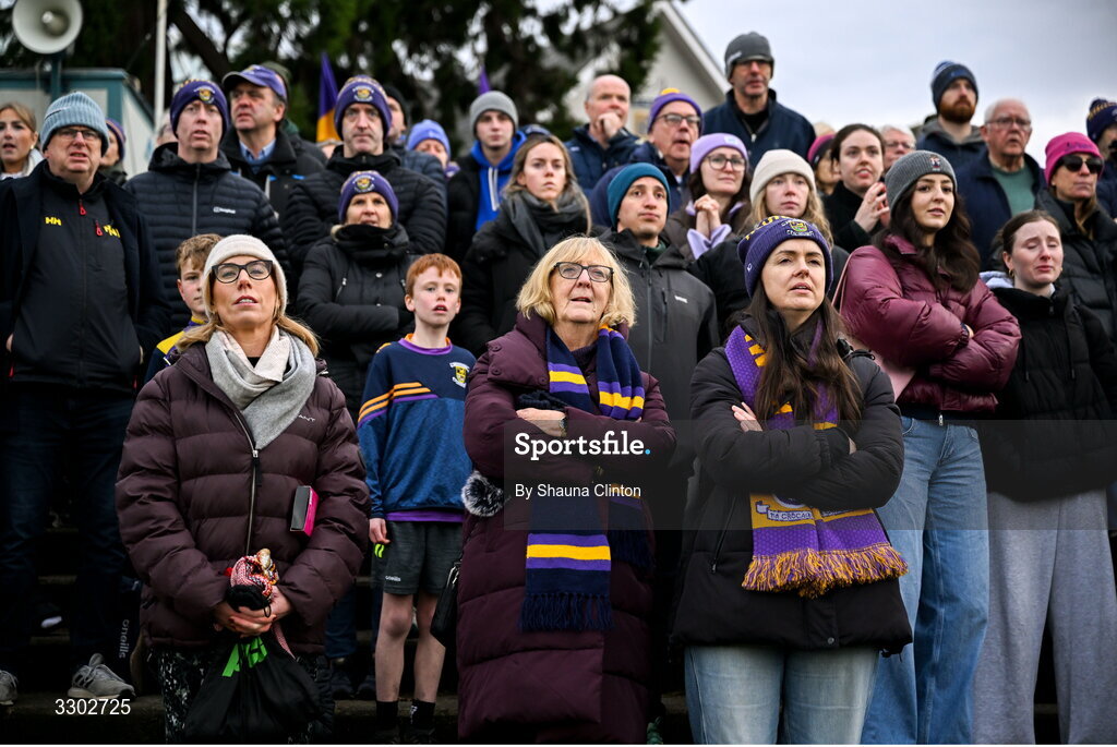 30 November 2025; Kilmacud Crokes supporters react during the 2025 AIB All-Ireland Ladies Football Club Senior Club Championship semi-final match between Kilmacud Crokes of Dublin and St Ergnat’s of Antrim at Páirc de Burca in Stillorgan, Dublin. Photo by Shauna Clinton/Sportsfile