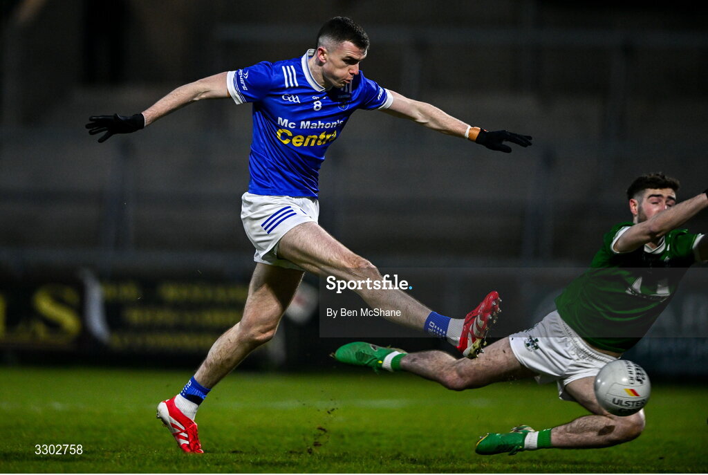 30 November 2025; Micheal McCarville of Scotstown scores his side's first goal during the AIB Ulster GAA Football Senior Club Championship semi-final match between Scotstown and Newbridge at BOX-IT Athletic Grounds in Armagh. Photo by Ben McShane/Sportsfile
