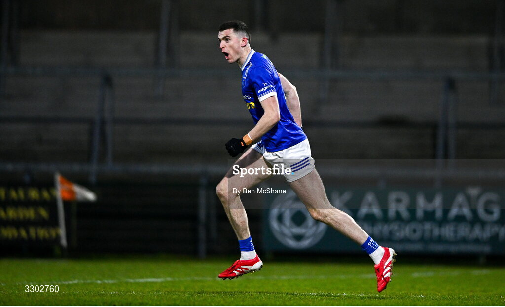 30 November 2025; Micheal McCarville of Scotstown celebrates after scoring his side's first goal during the AIB Ulster GAA Football Senior Club Championship semi-final match between Scotstown and Newbridge at BOX-IT Athletic Grounds in Armagh. Photo by Ben McShane/Sportsfile