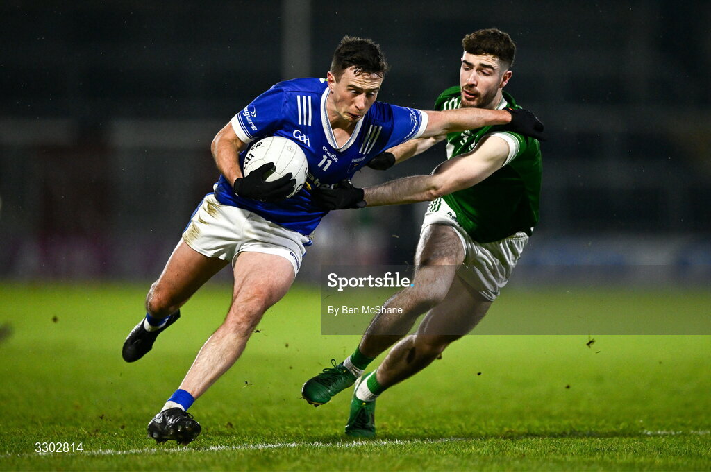 30 November 2025; Shane Carey of Scotstown is tackled by Shane McGrogan of Newbridge during the AIB Ulster GAA Football Senior Club Championship semi-final match between Scotstown and Newbridge at BOX-IT Athletic Grounds in Armagh. Photo by Ben McShane/Sportsfile