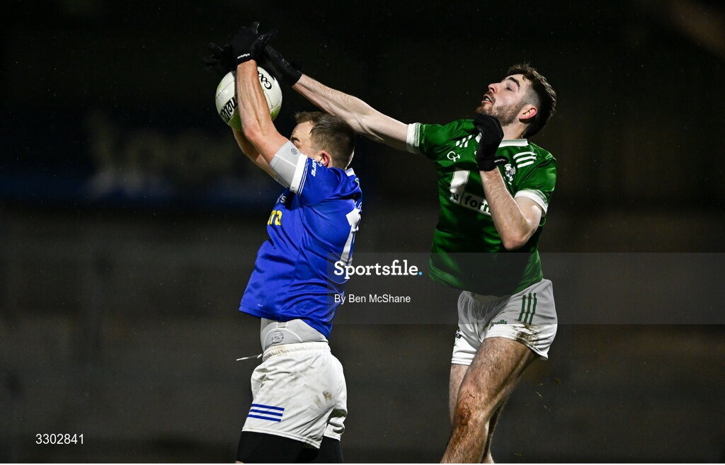 30 November 2025; Jack McCarron of Scotstown in action against Shane McGrogan of Newbridge during the AIB Ulster GAA Football Senior Club Championship semi-final match between Scotstown and Newbridge at BOX-IT Athletic Grounds in Armagh. Photo by Ben McShane/Sportsfile