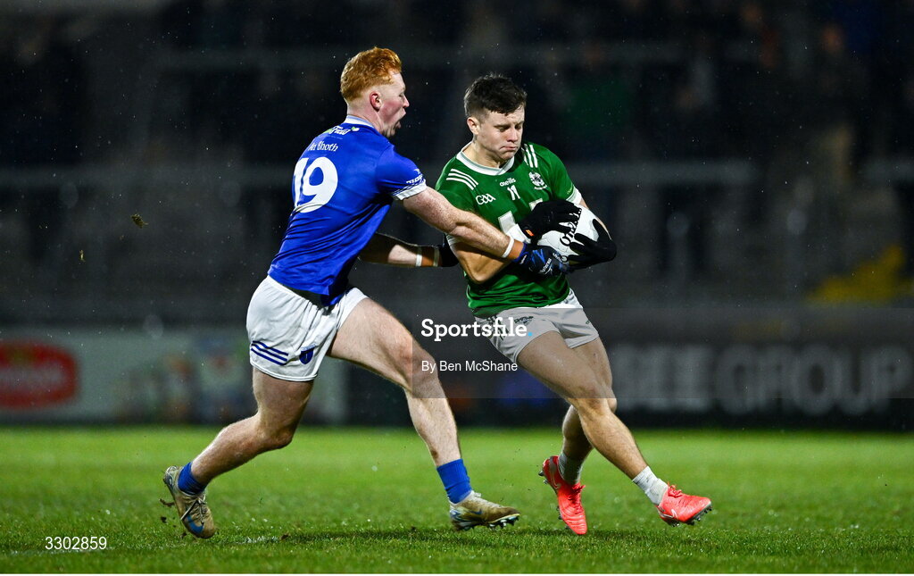 30 November 2025; Mark Doherty of Newbridge is tackled by Ryan O'Toole of Scotstown during the AIB Ulster GAA Football Senior Club Championship semi-final match between Scotstown and Newbridge at BOX-IT Athletic Grounds in Armagh. Photo by Ben McShane/Sportsfile