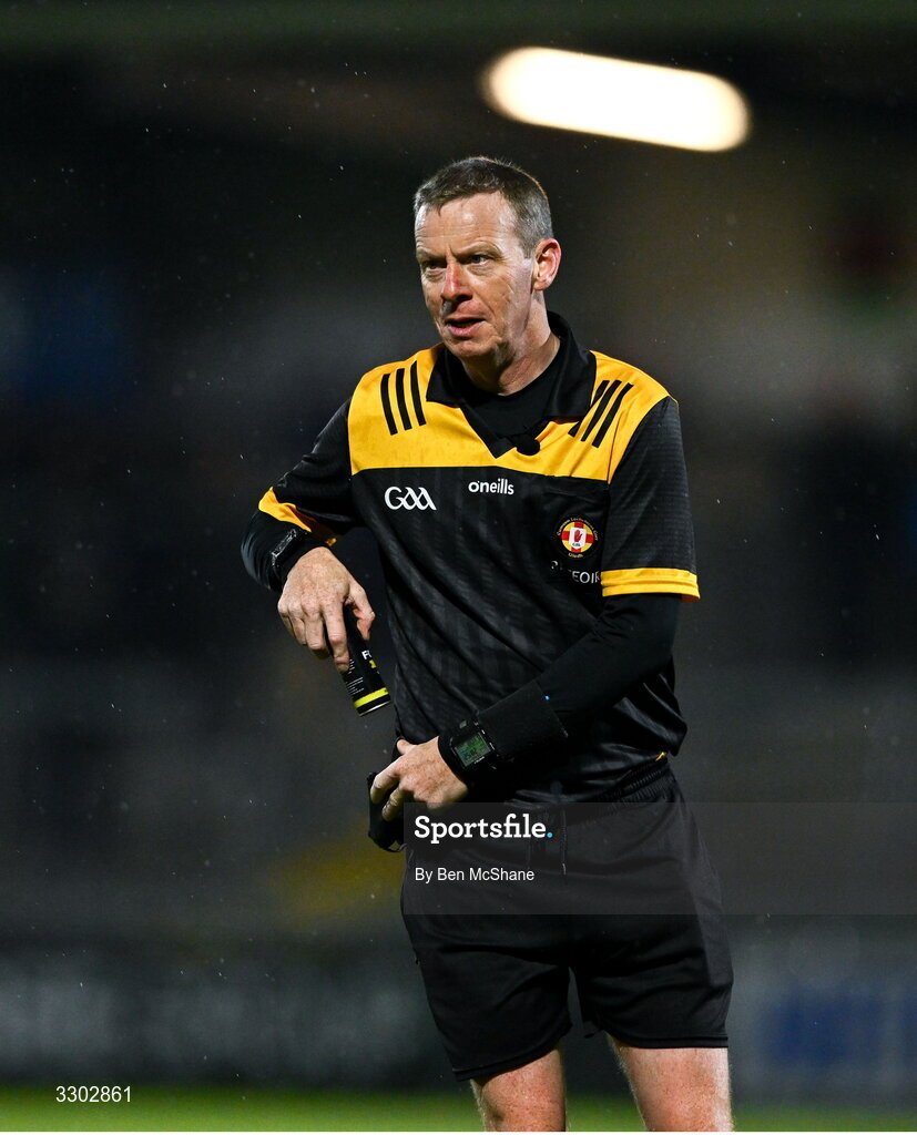30 November 2025; Referee Joe McQuillan during the AIB Ulster GAA Football Senior Club Championship semi-final match between Scotstown and Newbridge at BOX-IT Athletic Grounds in Armagh. Photo by Ben McShane/Sportsfile