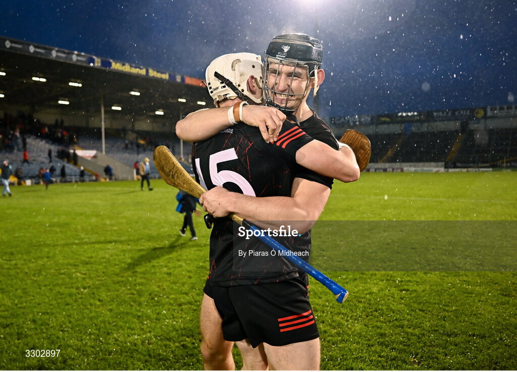 30 November 2025; Ballygunner players Michael Mahony, left, and Liam Corry after their side's victory in the AIB Munster GAA Hurling Senior Club Championship final match between Ballygunner and Éire Óg Ennis at FBD Semple Stadium in Thurles, Tipperary. Photo by Piaras Ó Mídheach/Sportsfile