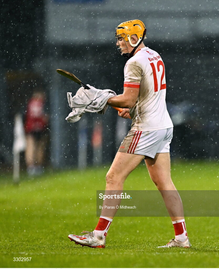 30 November 2025; David McNamara of Éire Óg Ennis uses a towel to dry his hurl during the AIB Munster GAA Hurling Senior Club Championship final match between Ballygunner and Éire Óg Ennis at FBD Semple Stadium in Thurles, Tipperary. Photo by Piaras Ó Mídheach/Sportsfile