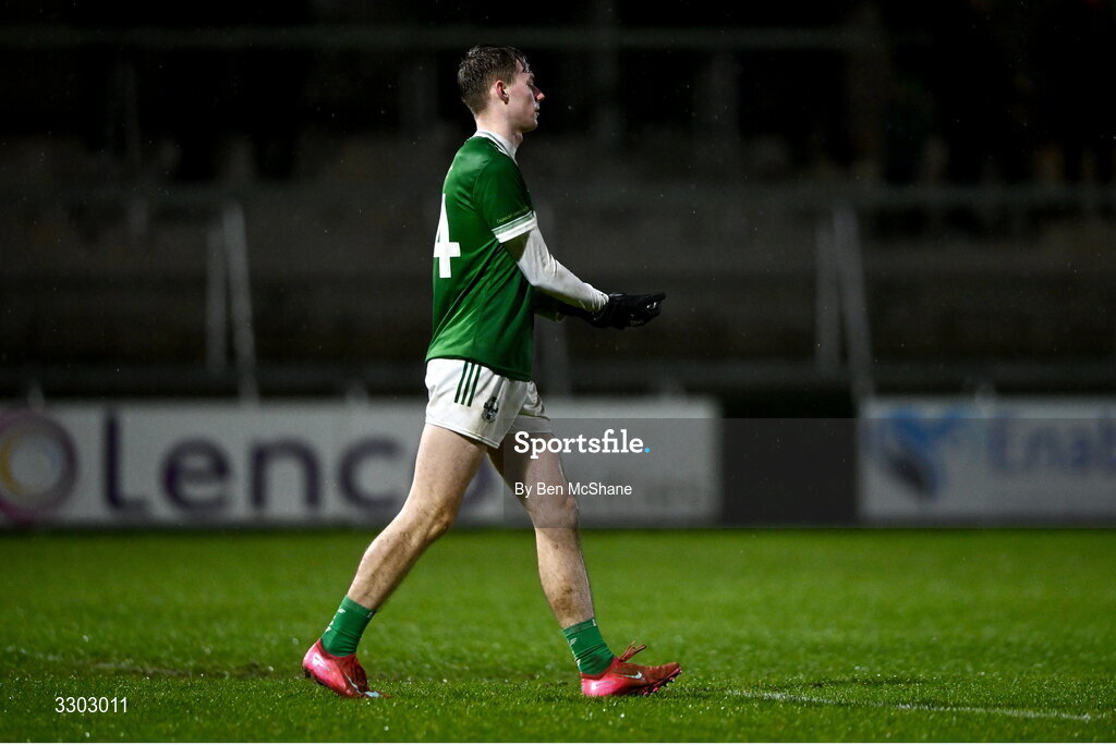 30 November 2025; Sean Young of Newbridge reacts after having his penalty saved by Scotstown goalkeeper Rory Beggan in the penalty shootout in the AIB Ulster GAA Football Senior Club Championship semi-final match between Scotstown and Newbridge at BOX-IT Athletic Grounds in Armagh. Photo by Ben McShane/Sportsfile