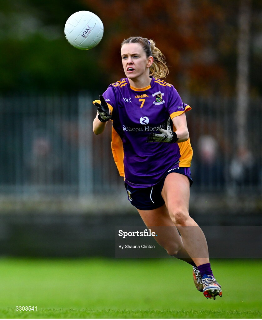 30 November 2025; Niamh Carr of Kilmacud Crokes during the 2025 AIB All-Ireland Ladies Football Club Senior Club Championship semi-final match between Kilmacud Crokes of Dublin and St Ergnat’s of Antrim at Páirc de Burca in Stillorgan, Dublin. Photo by Shauna Clinton/Sportsfile