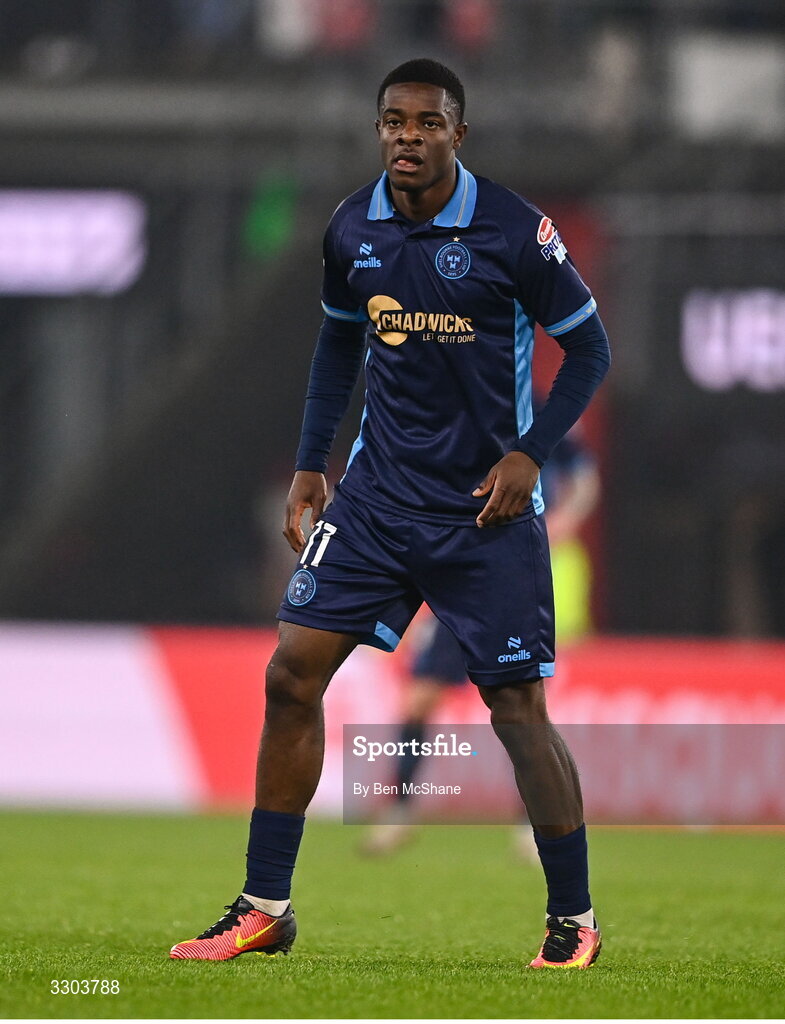 27 November 2025; Mipo Odubeko of Shelbourne during the UEFA Conference League 2025/26 league phase match between AZ Alkmaar and Shelbourne at AFAS Stadion in Alkmaar, Netherlands. Photo by Ben McShane/Sportsfile