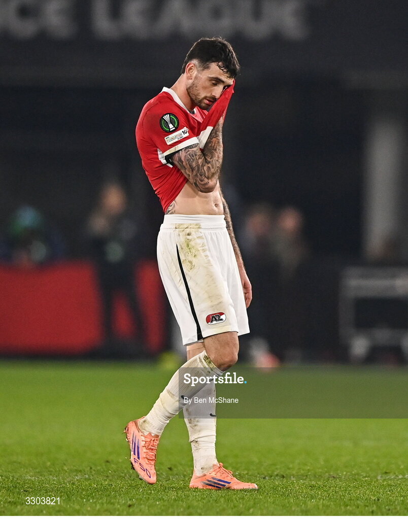 27 November 2025; Troy Parrott of AZ Alkmaar after the UEFA Conference League 2025/26 league phase match between AZ Alkmaar and Shelbourne at AFAS Stadion in Alkmaar, Netherlands. Photo by Ben McShane/Sportsfile