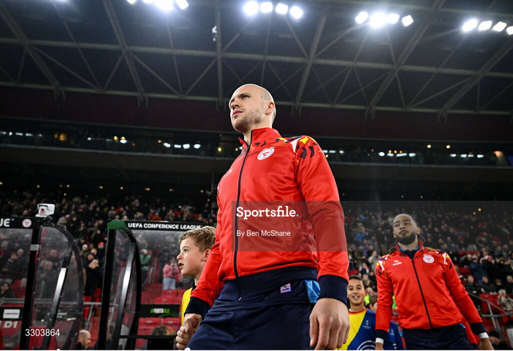 27 November 2025; Kerr McInroy of Shelbourne before the UEFA Conference League 2025/26 league phase match between AZ Alkmaar and Shelbourne at AFAS Stadion in Alkmaar, Netherlands. Photo by Ben McShane/Sportsfile
