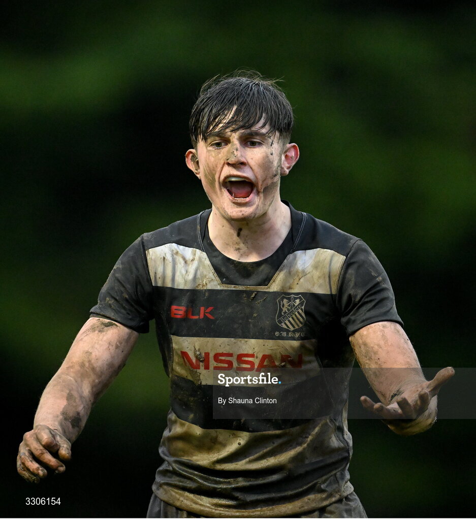 7 December 2025; Patrick O'Gorman of Old Belvedere RFC reacts during the Bank of Ireland JP Fanagan U20s league match between Old Belvedere RFC and MU Barnhall RFC at Ollie Campbell Park in Dublin. Photo by Shauna Clinton/Sportsfile