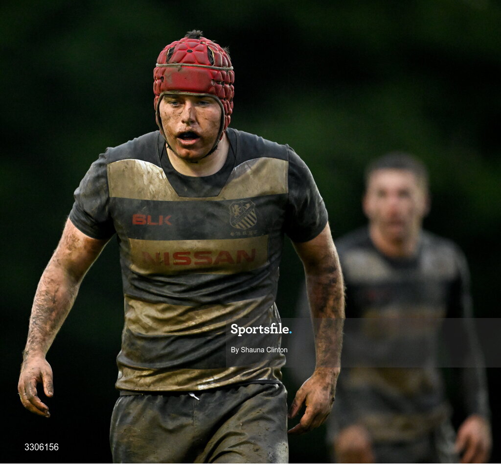 7 December 2025; Ryan Greally of Old Belvedere RFC during the Bank of Ireland JP Fanagan U20s league match between Old Belvedere RFC and MU Barnhall RFC at Ollie Campbell Park in Dublin. Photo by Shauna Clinton/Sportsfile