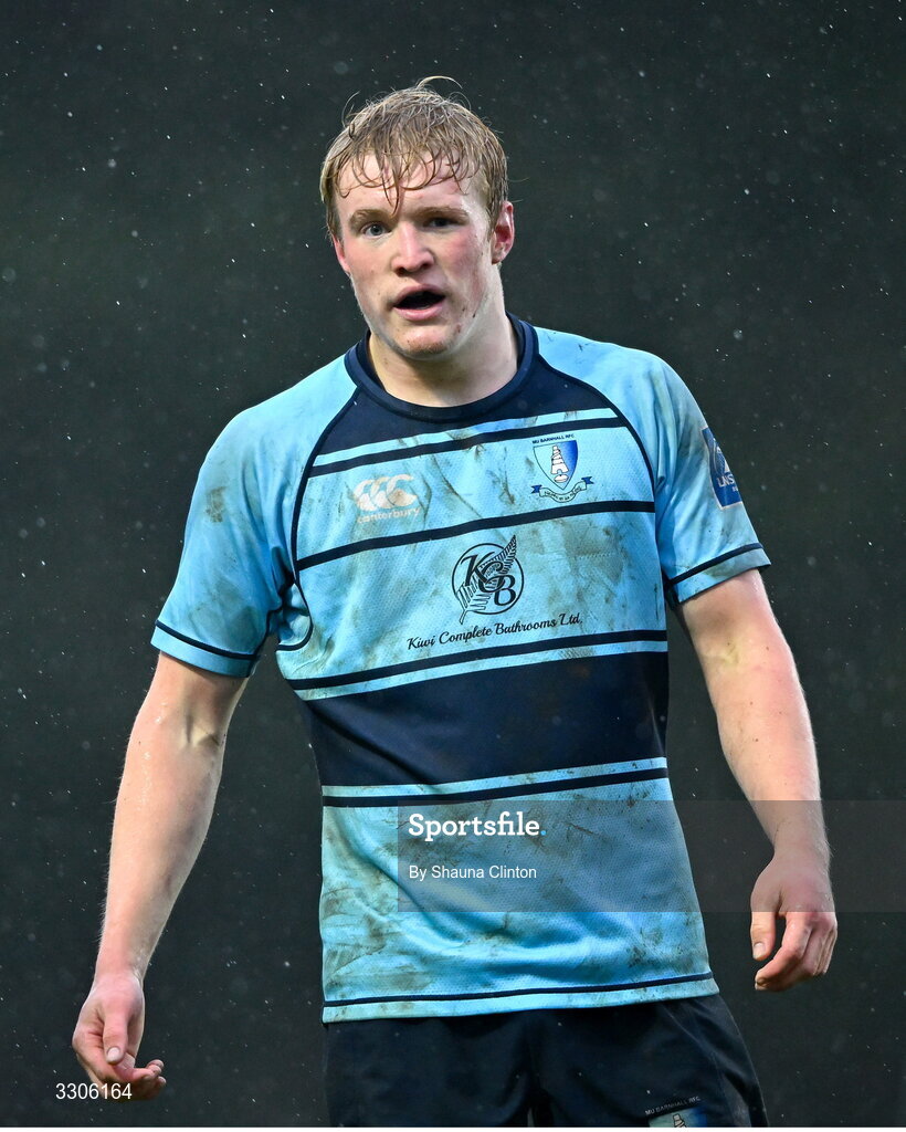 7 December 2025; Ethan Fennell of MU Barnhall RFC during the Bank of Ireland JP Fanagan U20s league match between Old Belvedere RFC and MU Barnhall RFC at Ollie Campbell Park in Dublin. Photo by Shauna Clinton/Sportsfile