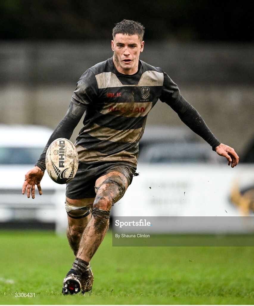 7 December 2025; Harvey Leonard of Old Belvedere RFC during the Bank of Ireland JP Fanagan U20s league match between Old Belvedere RFC and MU Barnhall RFC at Ollie Campbell Park in Dublin. Photo by Shauna Clinton/Sportsfile