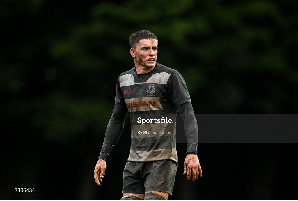 7 December 2025; Harvey Leonard of Old Belvedere RFC during the Bank of Ireland JP Fanagan U20s league match between Old Belvedere RFC and MU Barnhall RFC at Ollie Campbell Park in Dublin. Photo by Shauna Clinton/Sportsfile
