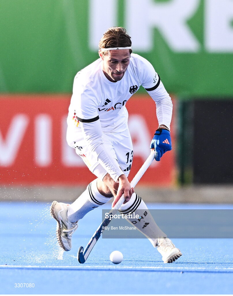 10 December 2025; Paul-Phillip Kaufmann of Germany during the FIH Men's Hockey Pro League match between England and Germany at the Sport Ireland Campus in Dublin. Photo by Ben McShane/Sportsfile