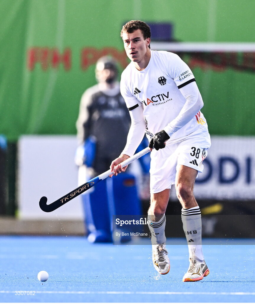 10 December 2025; Antheus Barry of Germany during the FIH Men's Hockey Pro League match between England and Germany at the Sport Ireland Campus in Dublin. Photo by Ben McShane/Sportsfile