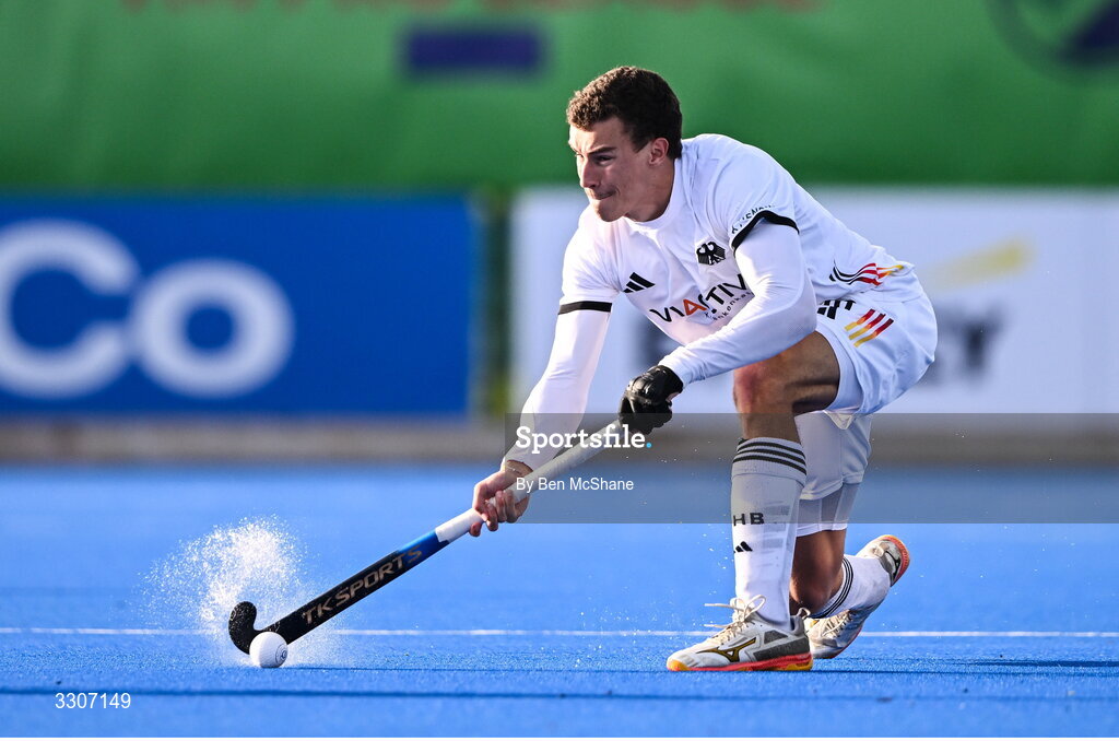10 December 2025; Antheus Barry of Germany during the FIH Men's Hockey Pro League match between England and Germany at the Sport Ireland Campus in Dublin. Photo by Ben McShane/Sportsfile