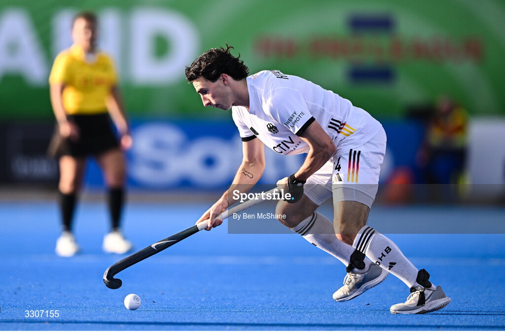10 December 2025; Teo Hinrichs of Germany during the FIH Men's Hockey Pro League match between England and Germany at the Sport Ireland Campus in Dublin. Photo by Ben McShane/Sportsfile