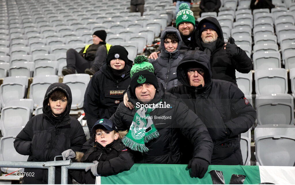11 December 2025; Shamrock Rovers supporters before the UEFA Conference League 2025/26 league phase match between Breidablik and Shamrock Rovers at Laugardalsvöllur in Reykjavik, Iceland. Photo by Haflidi Breidfjord/Sportsfile