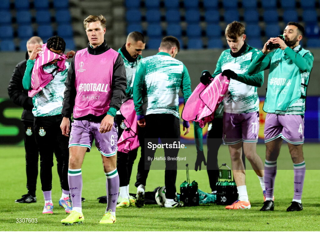 11 December 2025; Daniel Cleary of Shamrock Rovers before the UEFA Conference League 2025/26 league phase match between Breidablik and Shamrock Rovers at Laugardalsvöllur in Reykjavik, Iceland. Photo by Haflidi Breidfjord/Sportsfile