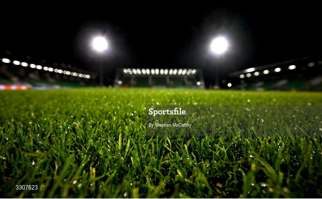 11 December 2025; A detailed view of the pitch before the UEFA Conference League 2025/26 league phase match between Shelbourne and Crystal Palace at Tallaght Stadium in Dublin. Photo by Stephen McCarthy/Sportsfile