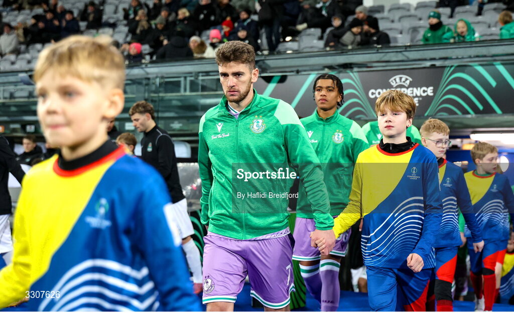 11 December 2025; Dylan Watts of Shamrock Rovers before the UEFA Conference League 2025/26 league phase match between Breidablik and Shamrock Rovers at Laugardalsvöllur in Reykjavik, Iceland. Photo by Haflidi Breidfjord/Sportsfile