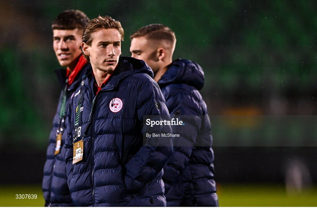 11 December 2025; Harry Wood of Shelbourne before the UEFA Conference League 2025/26 league phase match between Shelbourne and Crystal Palace at Tallaght Stadium in Dublin. Photo by Ben McShane/Sportsfile