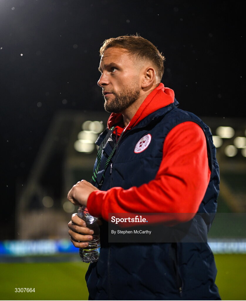 11 December 2025; Paddy Barrett of Shelbourne before the UEFA Conference League 2025/26 league phase match between Shelbourne and Crystal Palace at Tallaght Stadium in Dublin. Photo by Stephen McCarthy/Sportsfile