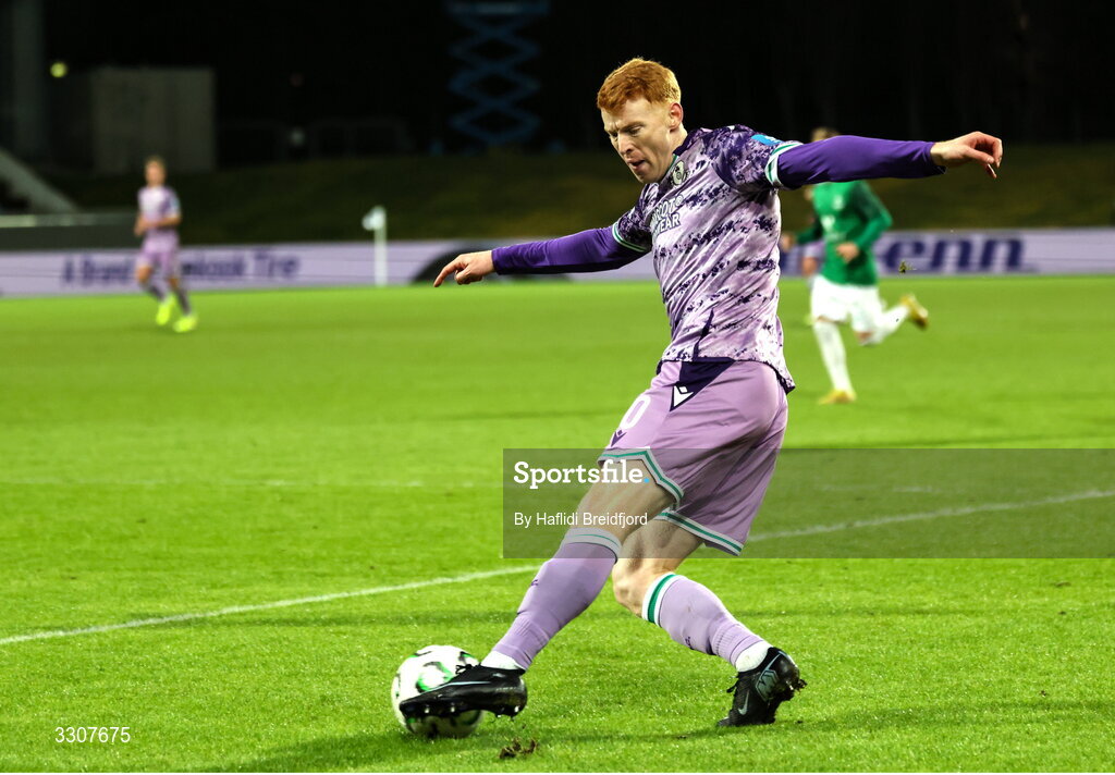 11 December 2025; Rory Gaffney of Shamrock Rovers during the UEFA Conference League 2025/26 league phase match between Breidablik and Shamrock Rovers at Laugardalsvöllur in Reykjavik, Iceland. Photo by Haflidi Breidfjord/Sportsfile