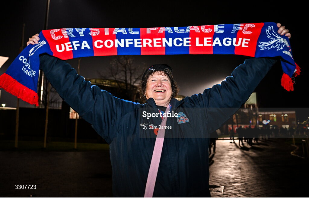 11 December 2025; Crystal Palace supporter Rosie Lillie, from London, before the UEFA Conference League 2025/26 league phase match between Shelbourne and Crystal Palace at Tallaght Stadium in Dublin. Photo by Sam Barnes/Sportsfile