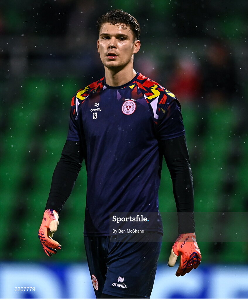 11 December 2025; Shelbourne goalkeeper Wessel Speel before the UEFA Conference League 2025/26 league phase match between Shelbourne and Crystal Palace at Tallaght Stadium in Dublin. Photo by Ben McShane/Sportsfile
