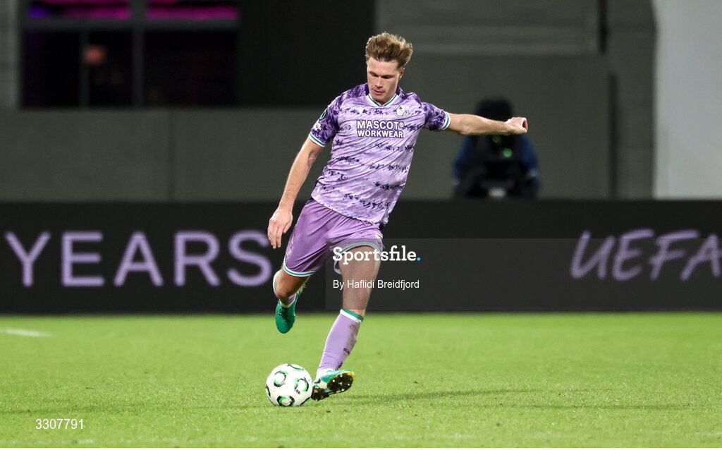 11 December 2025; Daniel Cleary of Shamrock Rovers during the UEFA Conference League 2025/26 league phase match between Breidablik and Shamrock Rovers at Laugardalsvöllur in Reykjavik, Iceland. Photo by Haflidi Breidfjord/Sportsfile