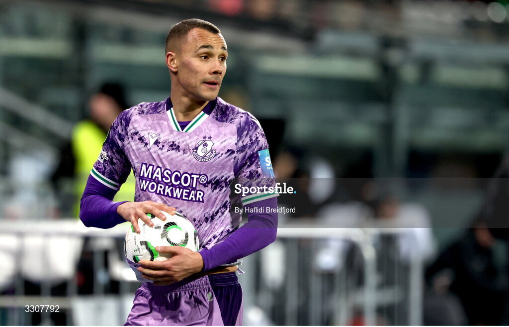 11 December 2025; Graham Burke of Shamrock Rovers during the UEFA Conference League 2025/26 league phase match between Breidablik and Shamrock Rovers at Laugardalsvöllur in Reykjavik, Iceland. Photo by Haflidi Breidfjord/Sportsfile