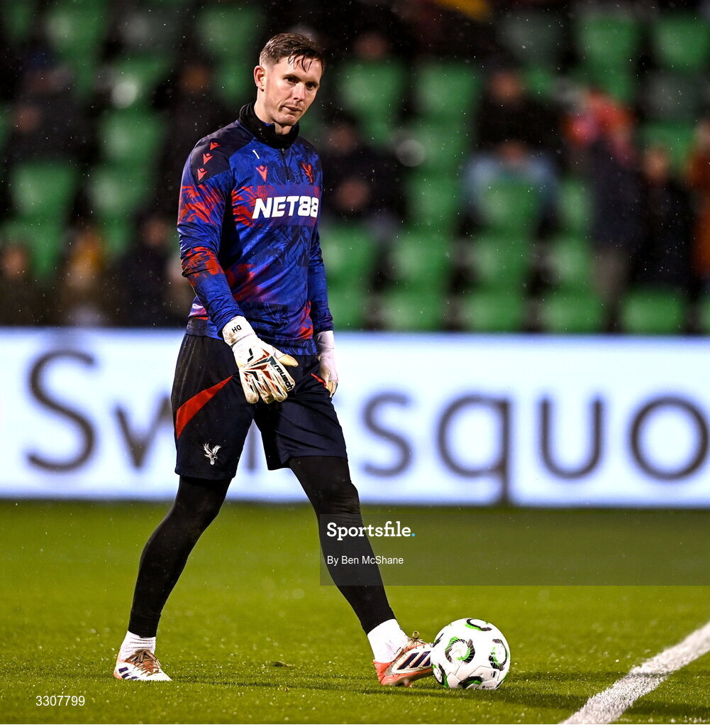 11 December 2025; Crystal Palace goalkeeper Dean Henderson before the UEFA Conference League 2025/26 league phase match between Shelbourne and Crystal Palace at Tallaght Stadium in Dublin. Photo by Ben McShane/Sportsfile
