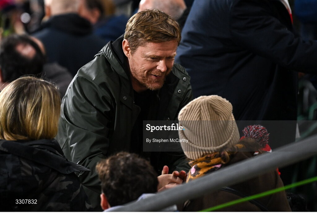 11 December 2025; Former Shelbourne manager Damien Duff in attendance during the UEFA Conference League 2025/26 league phase match between Shelbourne and Crystal Palace at Tallaght Stadium in Dublin. Photo by Stephen McCarthy/Sportsfile