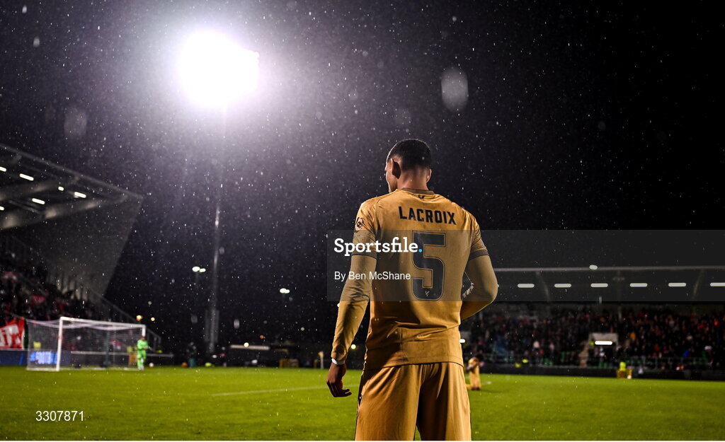 11 December 2025; Maxence Lacroix of Crystal Palace during the UEFA Conference League 2025/26 league phase match between Shelbourne and Crystal Palace at Tallaght Stadium in Dublin. Photo by Ben McShane/Sportsfile