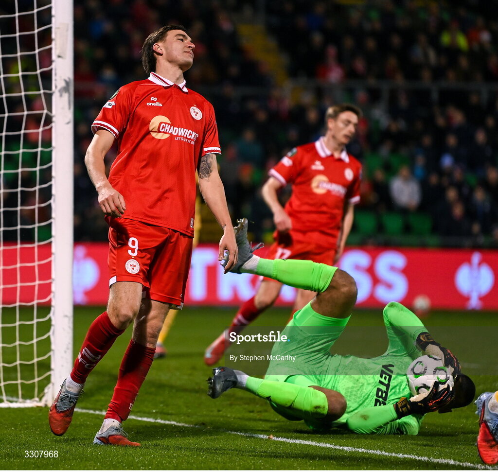 11 December 2025; Sean Boyd of Shelbourne reacts during the UEFA Conference League 2025/26 league phase match between Shelbourne and Crystal Palace at Tallaght Stadium in Dublin. Photo by Stephen McCarthy/Sportsfile