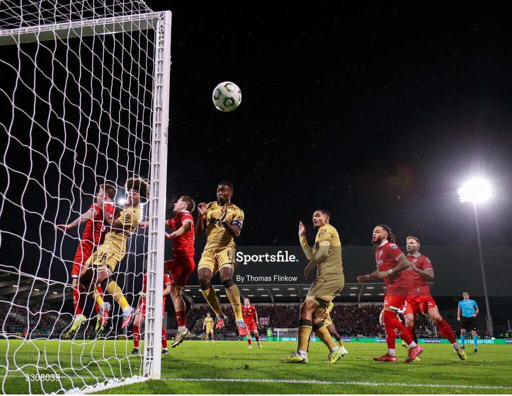 11 December 2025; Match action during the UEFA Conference League 2025/26 league phase match between Shelbourne and Crystal Palace at Tallaght Stadium in Dublin. Photo by Thomas Flinkow/Sportsfile