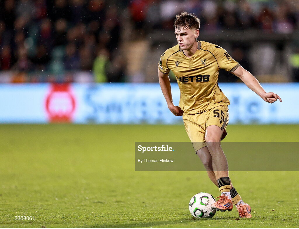 11 December 2025; Justin Devenny of Crystal Palace during the UEFA Conference League 2025/26 league phase match between Shelbourne and Crystal Palace at Tallaght Stadium in Dublin. Photo by Thomas Flinkow/Sportsfile