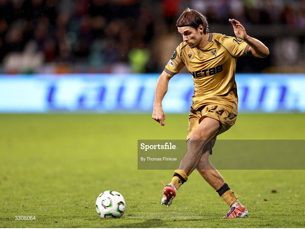 11 December 2025; Borna Sosa of Crystal Palace during the UEFA Conference League 2025/26 league phase match between Shelbourne and Crystal Palace at Tallaght Stadium in Dublin. Photo by Thomas Flinkow/Sportsfile