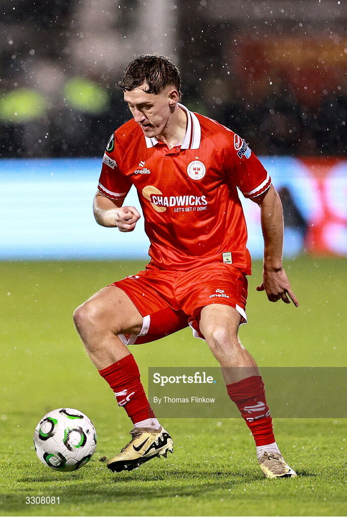 11 December 2025; John Martin of Shelbourne during the UEFA Conference League 2025/26 league phase match between Shelbourne and Crystal Palace at Tallaght Stadium in Dublin. Photo by Thomas Flinkow/Sportsfile
