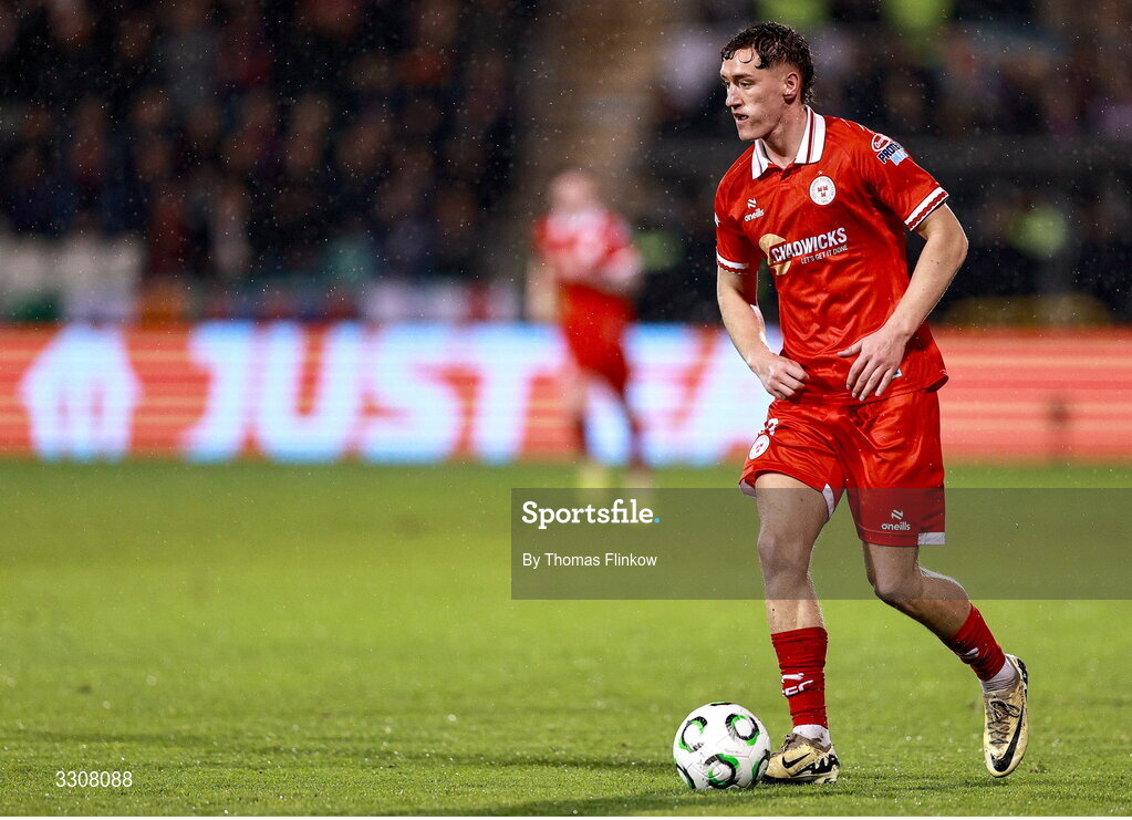 11 December 2025; John Martin of Shelbourne during the UEFA Conference League 2025/26 league phase match between Shelbourne and Crystal Palace at Tallaght Stadium in Dublin. Photo by Thomas Flinkow/Sportsfile