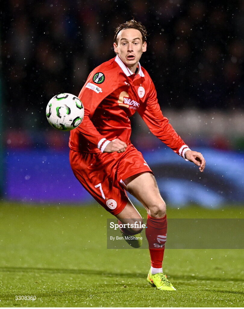 11 December 2025; Harry Wood of Shelbourne during the UEFA Conference League 2025/26 league phase match between Shelbourne and Crystal Palace at Tallaght Stadium in Dublin. Photo by Ben McShane/Sportsfile
