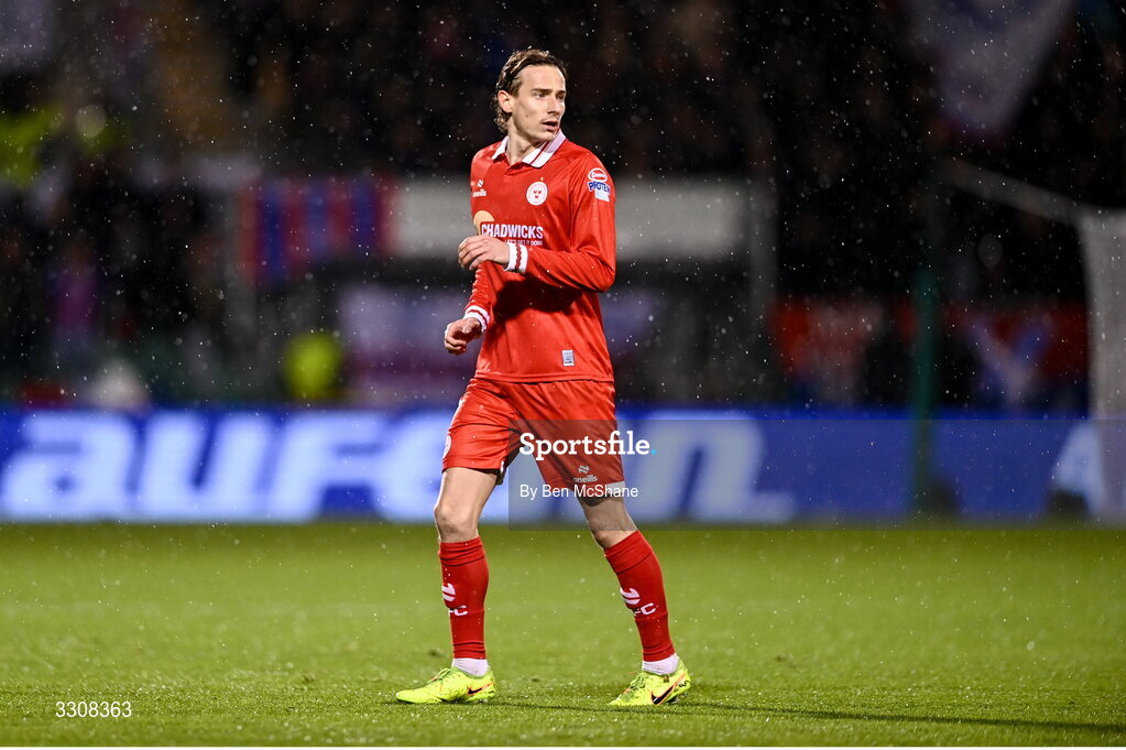 11 December 2025; Harry Wood of Shelbourne during the UEFA Conference League 2025/26 league phase match between Shelbourne and Crystal Palace at Tallaght Stadium in Dublin. Photo by Ben McShane/Sportsfile