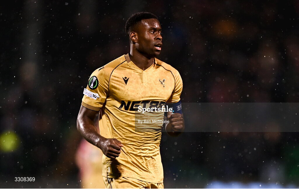 11 December 2025; Marc Guéhi of Crystal Palace during the UEFA Conference League 2025/26 league phase match between Shelbourne and Crystal Palace at Tallaght Stadium in Dublin. Photo by Ben McShane/Sportsfile